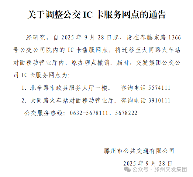 關(guān)于調(diào)整公交IC卡服務(wù)網(wǎng)點(diǎn)的通告