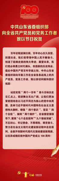 中共山東省委組織部向全省共產(chǎn)黨員和黨務(wù)工作者致以節(jié)日祝賀