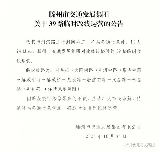 關(guān)于39路臨時(shí)改線運(yùn)營(yíng)的公告